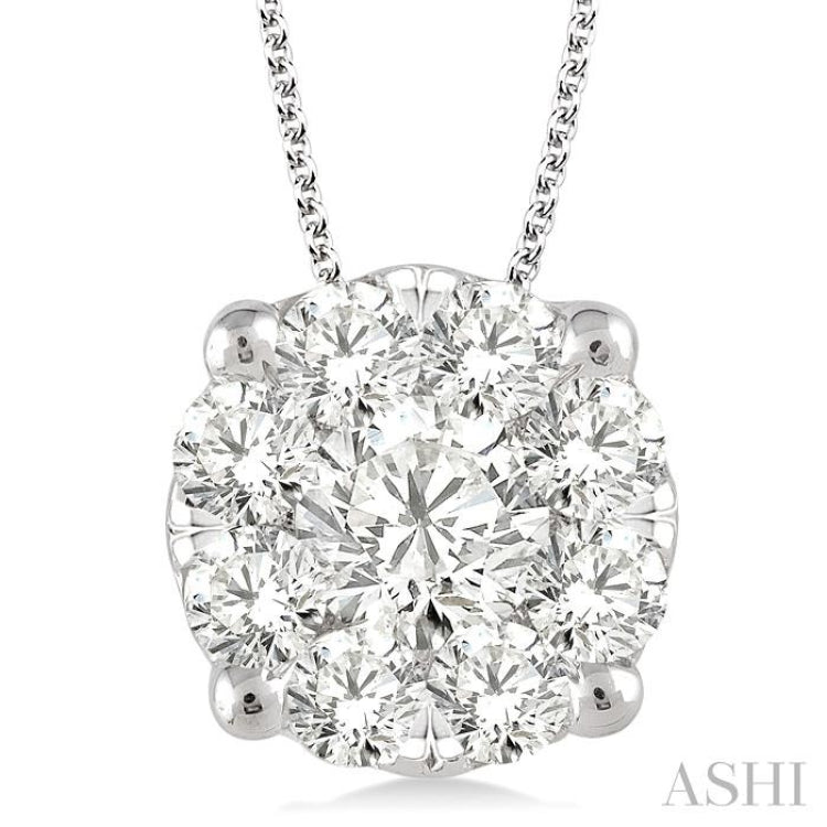 2 Ctw Lovebright Round Cut Diamond Pendant in 14K White Gold with Chain