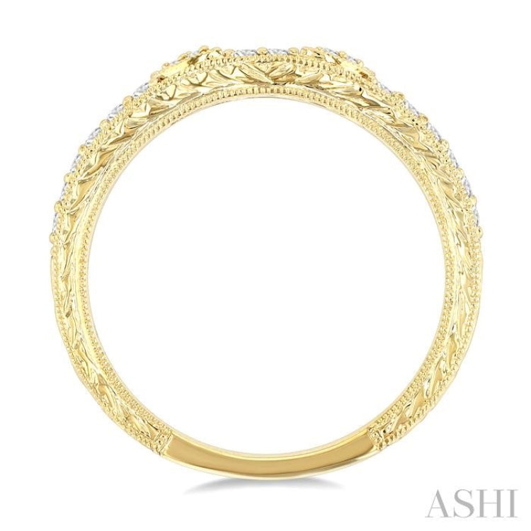1/6 Ctw Etched and Milgrain Highlighted Round Cut Diamond Wedding Band in 14K Yellow Gold