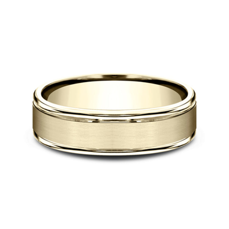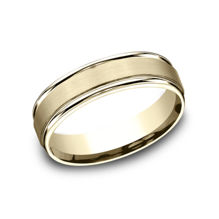 6mm, Comfort fit14K Yellow GoldSatin center, polished round edges